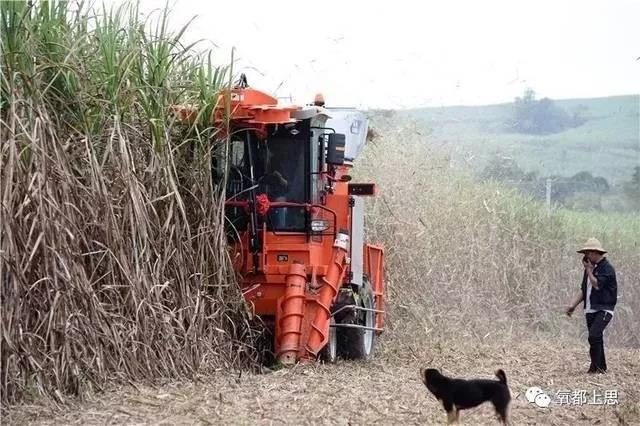 收割机正在收割甘蔗。(资料图)