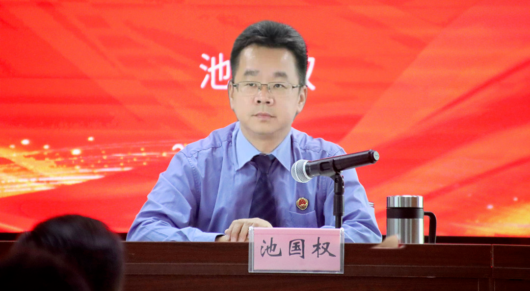 池国权立足自身对党的二十大精神的所学所思所悟,主要从中国式现代化的内涵、党提出中国式现代化对检察工作的要求、检察人员的历史使命三个方面进行了深入浅出的讲解,要求全体干警要在全面学习、全面把握、全面落实党的二十大精神上下功夫,精准把握党的二十大赋予新时代新征程检察机关更重责任,认真落实法律监督工作新要求,不折不扣贯彻好报告中关于“加强检察机关法律监督工作”的重大部署,用实干实绩书写新时代检察答卷。