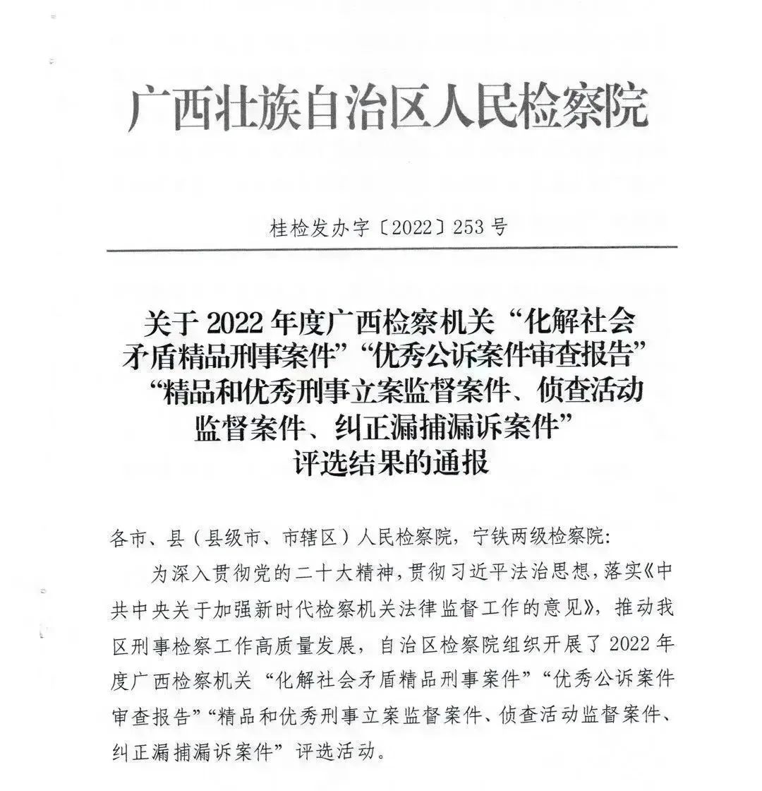 喜报!beat365官方登录入口_棋牌365大厅_365319377人民检察院一案件获评广西检察机关“优秀”案件