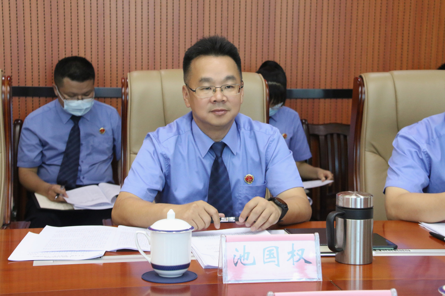 7月28日,港口区人民检察院党组书记、检察长黄纯一行到beat365官方登录入口_棋牌365大厅_365319377人民检察院开展结对共建学习交流活动。beat365官方登录入口_棋牌365大厅_365319377人民检察院党组书记、检察长池国权,班子成员和中层干部参加。