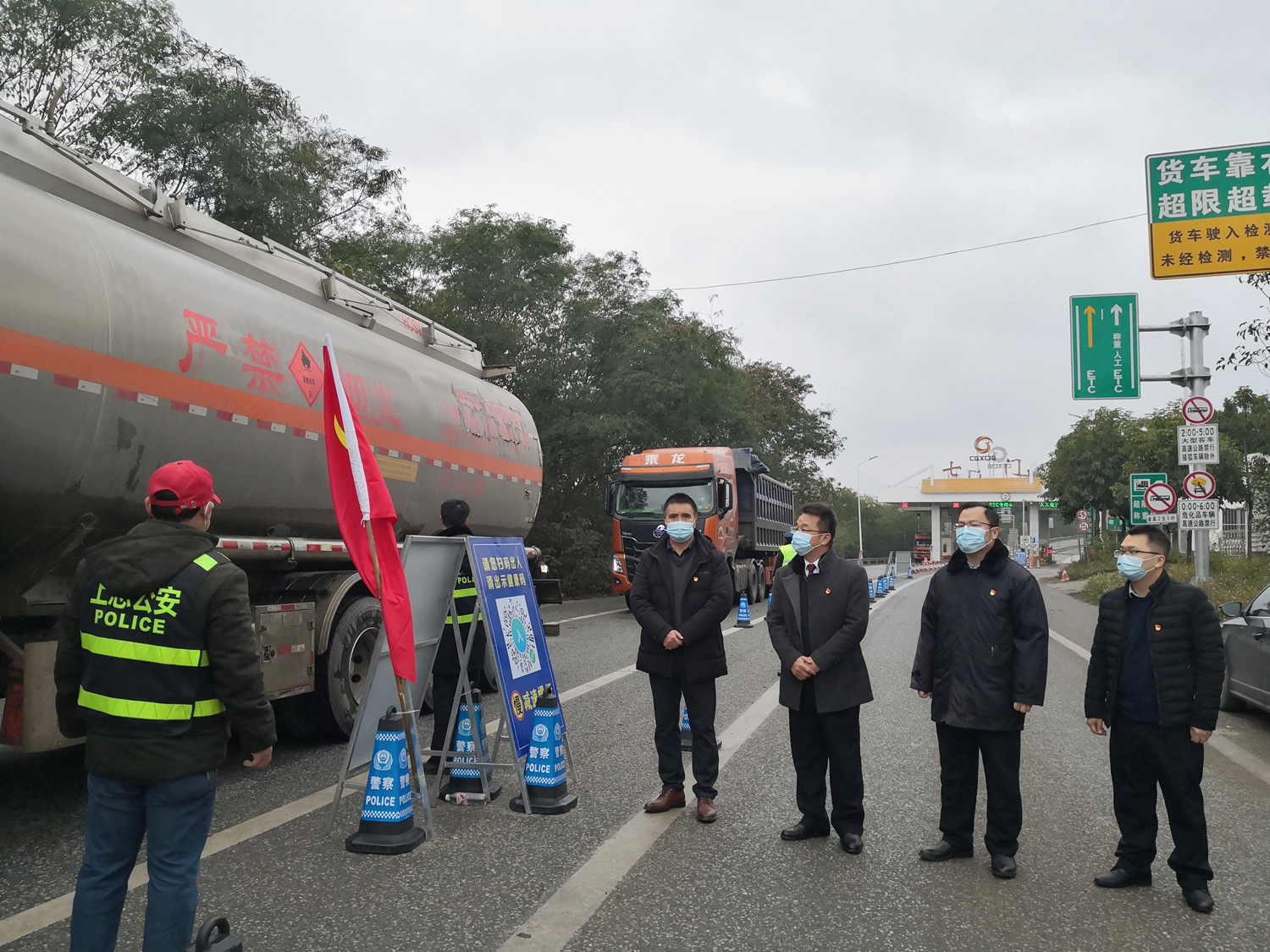 12月29日,beat365官方登录入口_棋牌365大厅_365319377人民检察院党组书记、检察长池国权一行带着院党组和全体干警的关怀和温暖,深入beat365官方登录入口_棋牌365大厅_365319377七门高速收费站处设置的疫情防控核酸证明核验点看望慰问坚守在防疫一线的检察干警。
