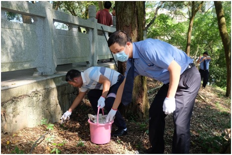3、9月29日上午,在全国第八个烈士纪念日到来之际,防城区人民检察院党支部联合防城区退役军人事务局党支部、防城区文化馆党支部到防城烈士陵园开展“保护烈士纪念设施,缅怀革命先烈”主题党日活动,防城区人民检察院的检察官就防城烈士陵园存在的部分碑文破损,字迹错误不清等问题提出意见,并就如何修复受损的碑文与防城区退役军人事务局、防城区文化馆相关人员现场沟通交流,凝聚红色资源保护合力。