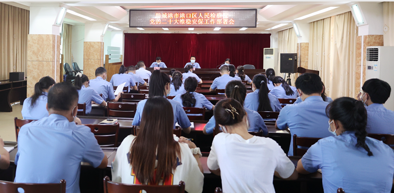 会议传达学习了贯彻最高检、自治区院和市院关于党的二十大维稳安保工作部署要求,认真学习贯彻全区检察机关党的二十大维稳安保工作视频会会议精神,对党的二十大召开期间港口区人民检察院全员维稳安保工作做出部署,强调全院干警要以强烈的政治使命感、历史责任感和工作紧迫感,做好当前时期稳定安全工作,把党的二十大维稳安保各项工作做深做实。