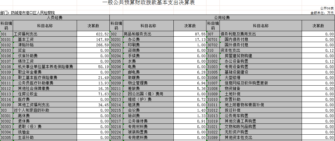 第二部分:防城港市港口区人民检察院2019年部门决算报表