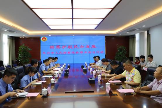 2019年8月22日上午,东兴市检察院开展了以“检察护航民企发展”为主题的检察开放日活动。市政协副主席、工商联主席、商会会长毛共钦及11位民营企业家代表,零距离感受检察工作,共话检察机关如何更好地服务民营企业发展。